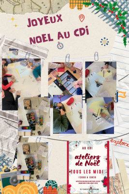 Lindsay (en stage au CDI) propose des ateliers créatifs autour de Noël tous les midi.